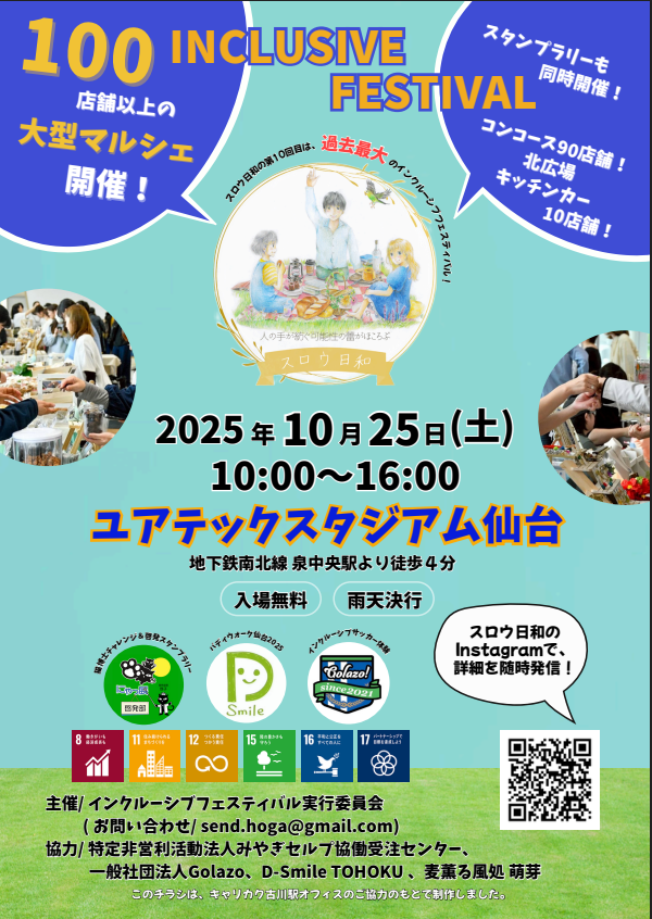 10月25日(土)10:00~16:00 ユアテックスタジアム仙台を会場に「インクルーシブフェスティバル」を開催します!