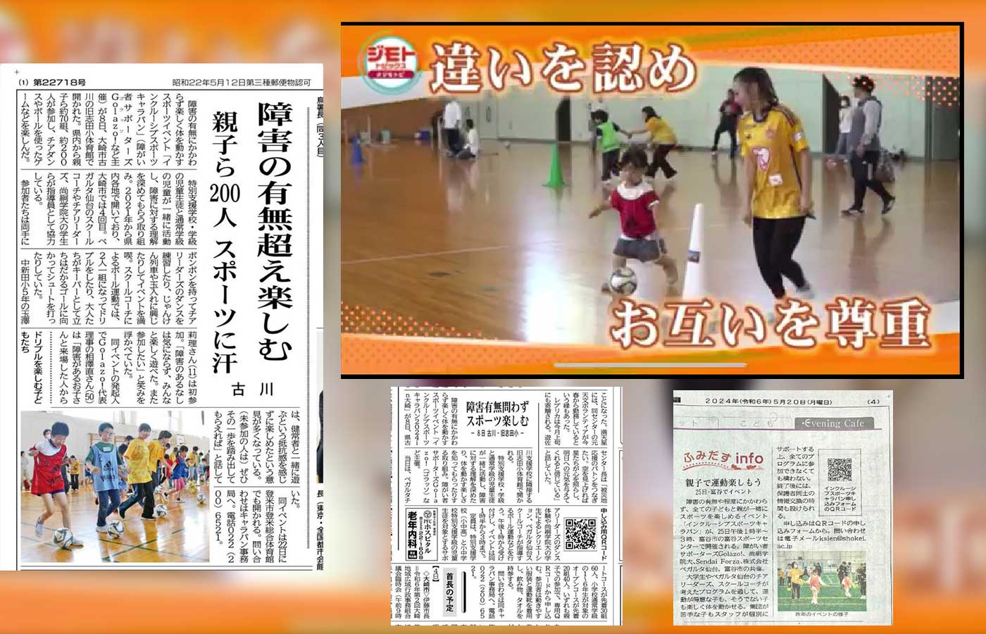 ゴラッソの「インクルーシブスポーツキャラバン」の取り組みは、毎年複数回各新聞やテレビ等の取材にて取り上げられています。