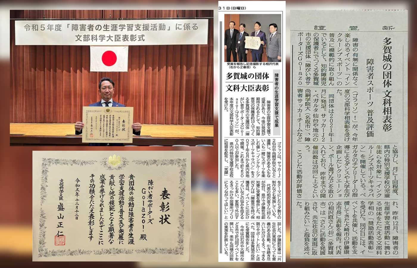 インクルーシブスポーツキャラバン等の活動が国に認められ、奨励活動として令和5年度「障害者の生涯学習支援活動」に係る文部科学大臣表彰を受賞しました。